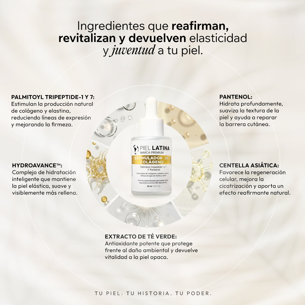 Porque a partir de los 30 la producción natural de colágeno baja progresivamente; este suero reactiva esos procesos para prevenir flacidez y microarrugas antes de que se instalen.