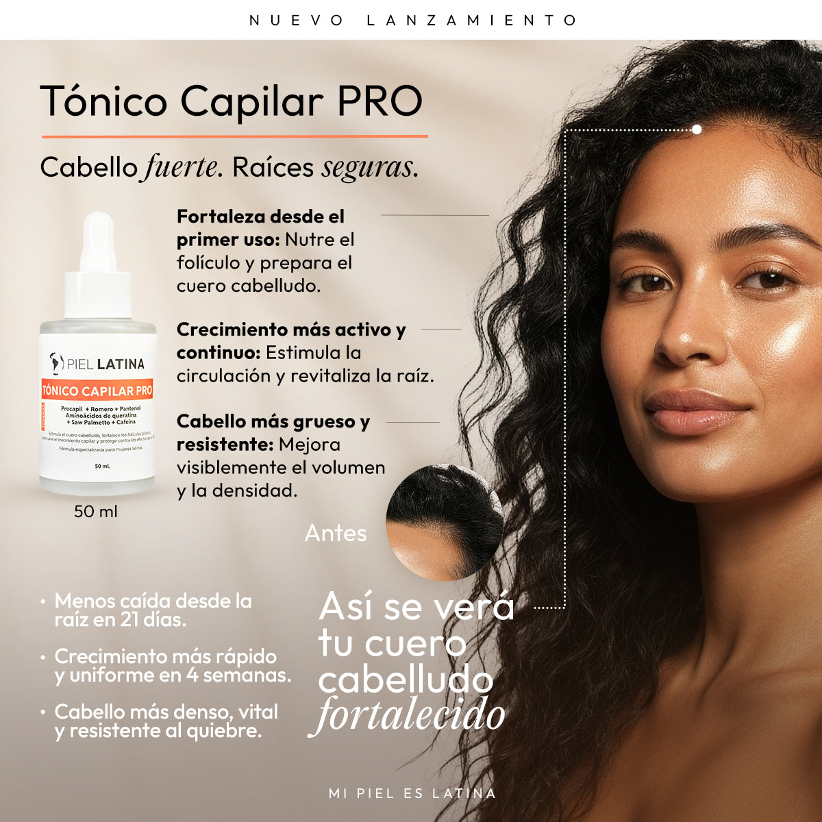 💡 Con TÓNICO CAPILAR PRO, tu cabello recupera su ciclo natural, vuelve a crecer con fuerza y se siente más denso, saludable y resistente.